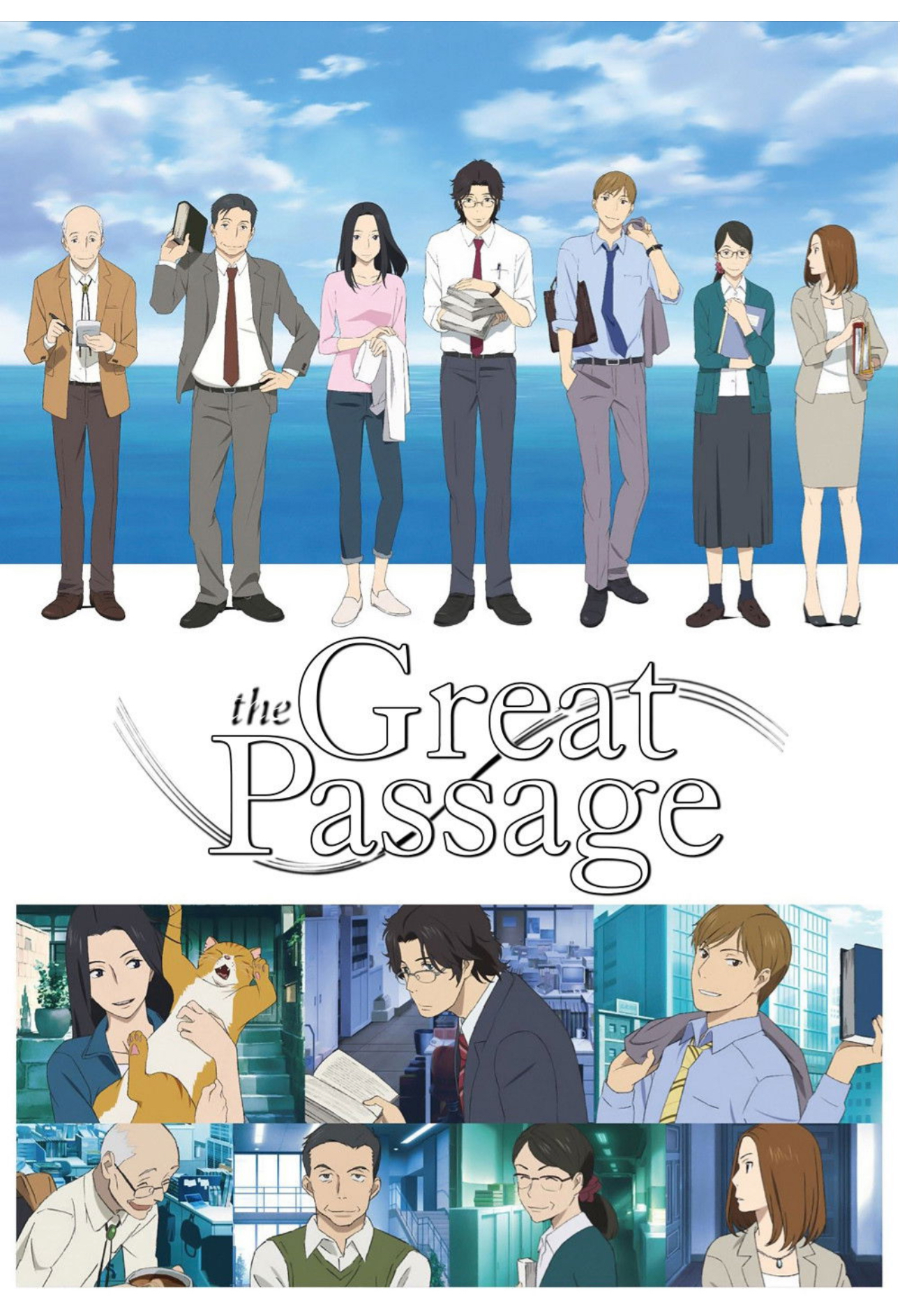 배를 엮다는 2016년 방영된 11부작 애니메이션이에요. 영업부에서 인정받지 못하던 마지메 미츠야가 사전 편집부로 이동하면서 국어사전 ‘대도해’를 만드는 과정을 담았어요. 원제는 舟を編む. 제목처럼 말의 바다를 엮어 배를 띄운다는 의미가 인상 깊었어요.